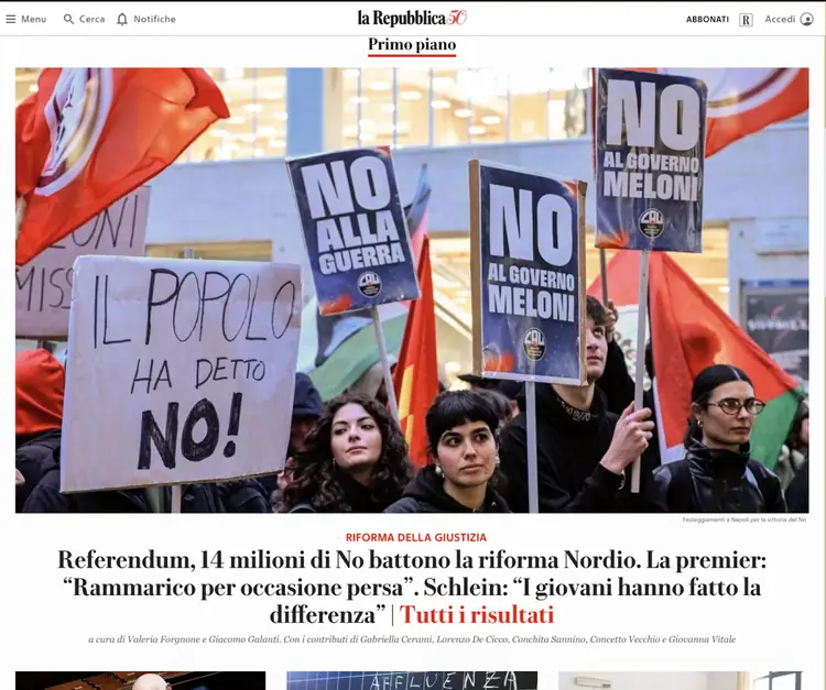 Conte: "Ce l'abbiamo fatta". Schlein: "Meloni e il governo devono ascoltare il Paese e le vere priorità". Bindi: "Non chiederemo mai le dimissioni di nessuno". Renzi: "La premier non può fare finta di nulla"Si stanno ancora contando le schede e già la sinistra chiede le dimissioni del governo. "Fall
